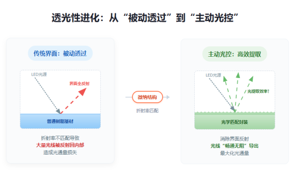 在透光性方面,通过折射率匹配减少界面损失,利用微结构蚀刻提升光提取效率;在耐热性方面,选用高玻璃化转变温度材料,构建微观热传导网络;在耐候性方面,采用紫外线吸收剂与抗老化剂的协同体系,优化分子交联密度,防止黄变与脆化。