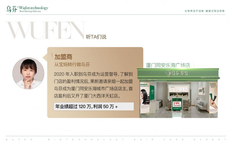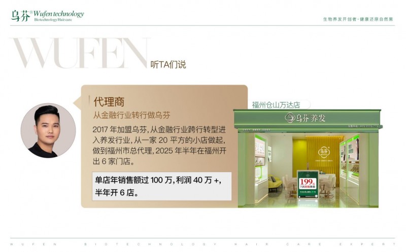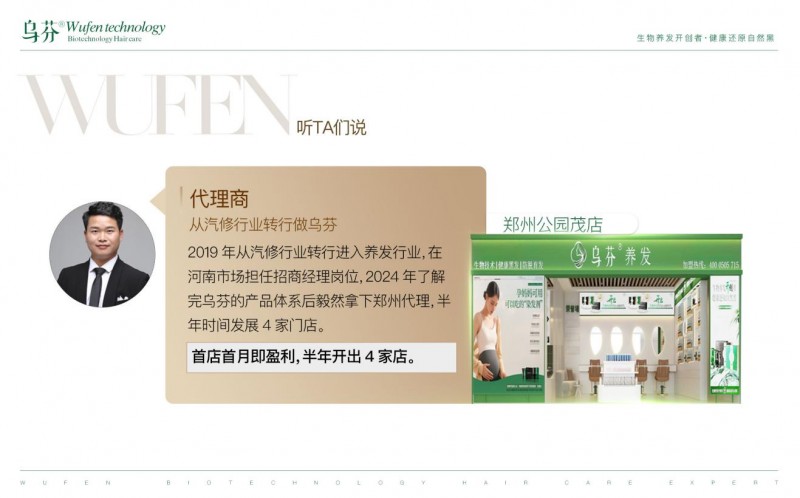 “养发市场这么大,我能分一杯羹吗?” 这是很多创业者的疑问。乌芬用 “低风险、高支持、易复制” 的加盟模式给出了肯定答案。