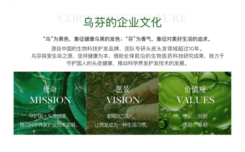 乌芬二字,“乌” 为黑,象征健康发色;“芬” 为香,代表美好生活 —— 这不仅是品牌名的寓意,更是产品研发的标准。乌芬坚持 “安全、高效、便捷” 三大原则:
