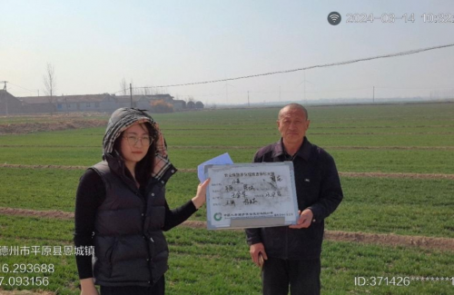 中国人寿财险德州市中心支公司对平原县恩城镇的冬小麦进行验标承保。