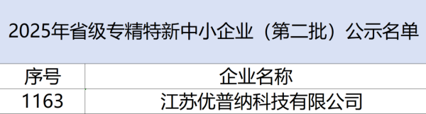 近日,江苏省工业和信息化厅正式公布了2025年度省级专精特新中小企业(第二批)名单,江苏优普纳科技有限公司凭借在技术创新、产品质量、产业化能力及行业影响力等方面的突出表现,成功获评这一重要荣誉。