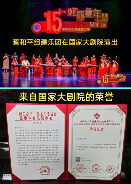 他的教育创新,始于对传统教学痛点的破解。创办艺术中心之初,他发现很多孩子因竹笛难学而放弃,便自主钻研“阶梯式教学法”:先用和平笛打基础,掌握指法后再过渡到传统竹笛,半年就能登台演出。“就像学走路,先扶着栏杆走稳了,再撒开手跑”,蔡和平道:学生徐卢飞就是其中一个受益者,这个曾因吹不响竹笛哭鼻子的男孩,用和平笛入门,两年后便凭笛子参加第二届全国青少年文化遗产知识大赛获得全省一等奖的佳绩,蔡和平也因此获得“全省优秀指导老师”荣誉。他说:“艺术教育不仅是技艺的传授,更是一场心灵的对话,教师要以先进理念为帆,以因材施教为桨,引领学子在艺术的海洋中扬帆远航。音乐宛若神奇的魔法师,既能雕琢审美品格,又能锻造坚韧心性,让每个跳动的音符都化作成长的养分。”音乐教材编写是他传承民乐的另一种方式。多年来,蔡和平编著出版了三套音乐教材,打破了传统教材的枯燥,用“趣味+乐谱”的形式讲解,强调实践、循序渐进、逐步提升,结合图片对照的方法,使人一学即懂。“我这一辈子,做了很多有意义的事,但这三件最深刻:奏好乐,写好曲,教好人。”蔡和平说,他的梦想很简单,就是让更多人“拿起乐器时不犯怵,听到乐声时会心笑”。
